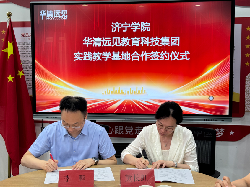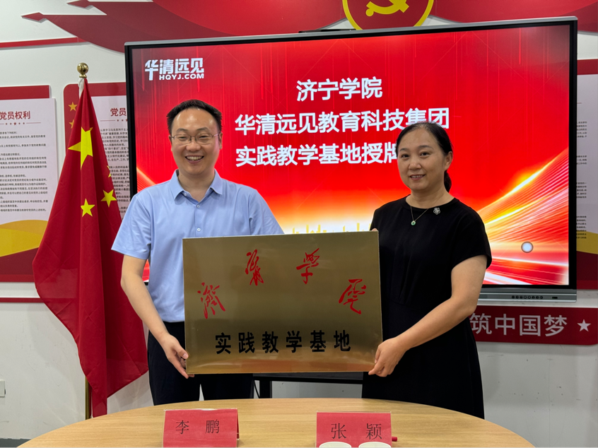 在华清远见教育科技集团济南分公司,集团副总裁兼济南分公司党委书记、总经理李鹏,济南分公司副总经理孙安琪,技术部经理马小丽、职业导师鲁冉冉、职业规划师王玲玲共同出席座谈。李鹏介绍了集团基本情况,双方前期合作成果及育人成效,希望双方能够在学生职业生涯规划、学科竞赛、信创人才培养方面进一步深化合作。黄长虹、张颖分别介绍了学院的基本情况,希望双方能够产教研学优势互补,在人才跨专业培养、学生高质量就业等方面加强协作。随后双方在产教协同育人、师资培训、专创融合教材的开发等方面达成共识。随后,黄长虹代表学校与华清远见教育科技集团签署了实践教学基地协议书,张颖代表学校进行了授牌。