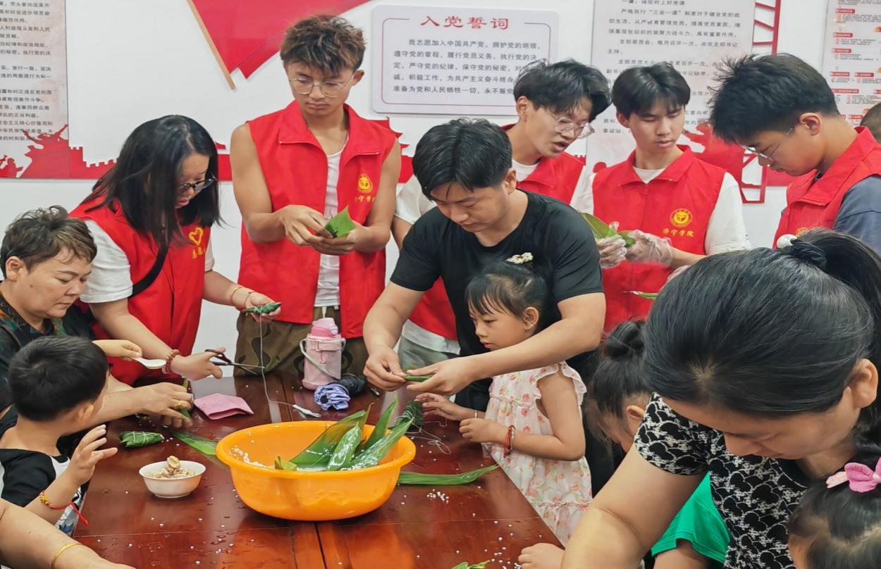 粽叶飘香,童心绽放在实践团志愿者和家长的指导下,小朋友们亲手包裹粽子,不仅锻炼了动手能力,更在这一传统习俗中加深了家庭成员之间的情感交流,让儿童们体验到包粽子的快乐,每一只完成的粽子都是孩子们成就感的象征,洋溢着温馨与喜悦。