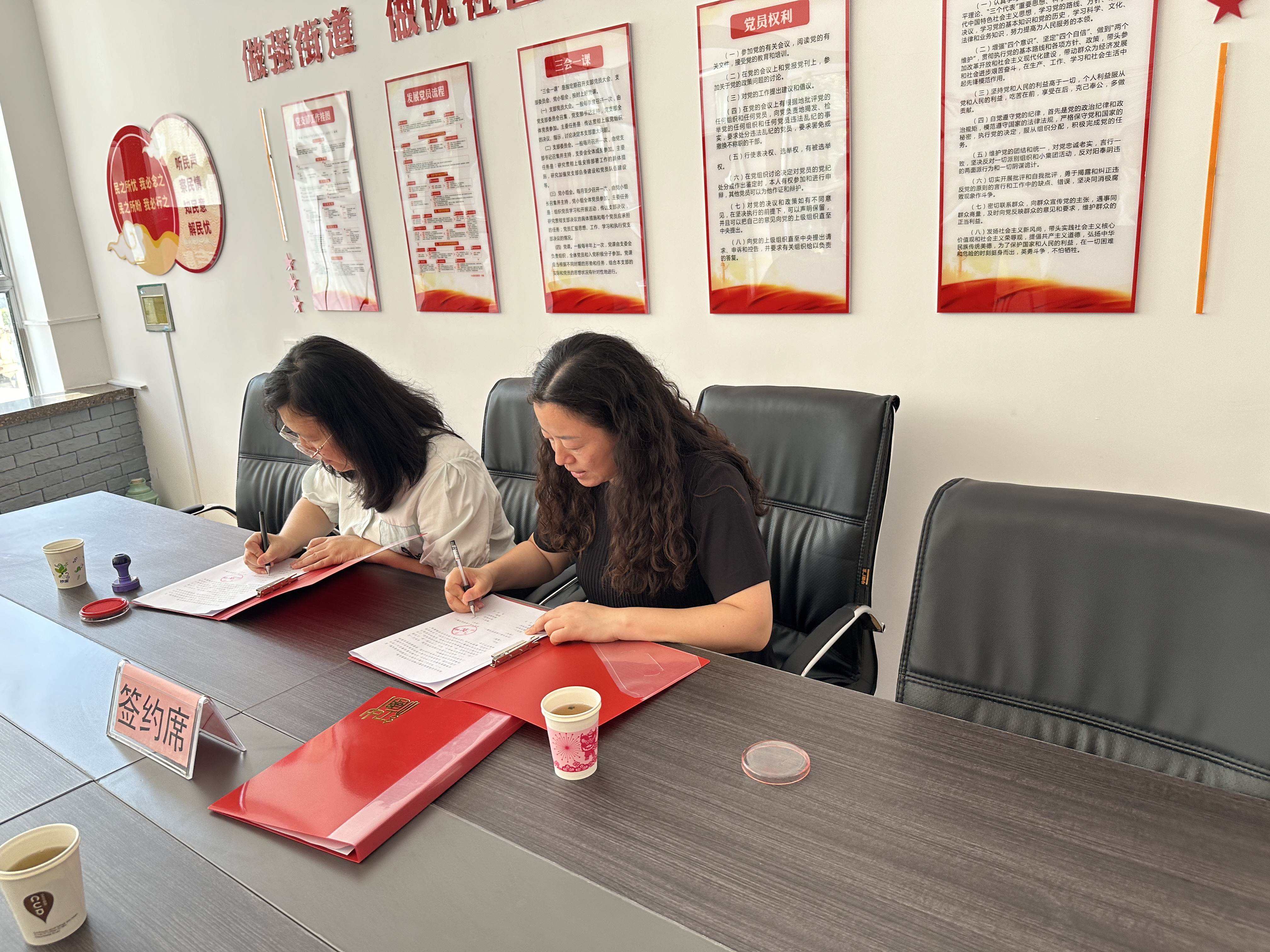 计算机科学与工程学院辅导员孔晓霞、曲阜市小雪街道明礼社区党委书记高丽芬,共同签署合作协议。