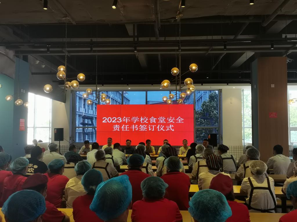 随后,刘忠建代表学校与各食堂负责人现场签订了食堂安全责任书,各食堂负责人与各班组长也分别签署安全责任书。