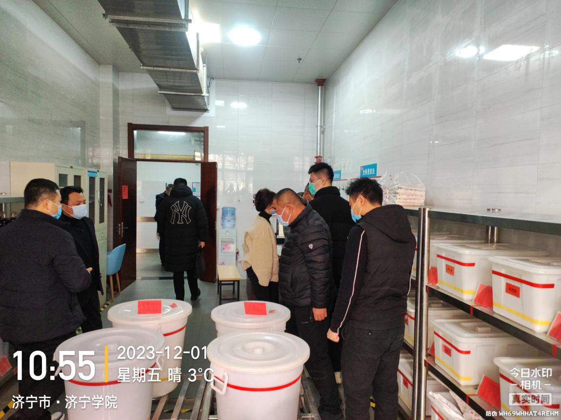 2023年12月1日上午,济宁市市场监督管理局综合执法队队长袁瑞一行6人来我校检查食堂工作,后勤管理与基建处处长刘忠建、副处长高源及相关人员陪同检查。