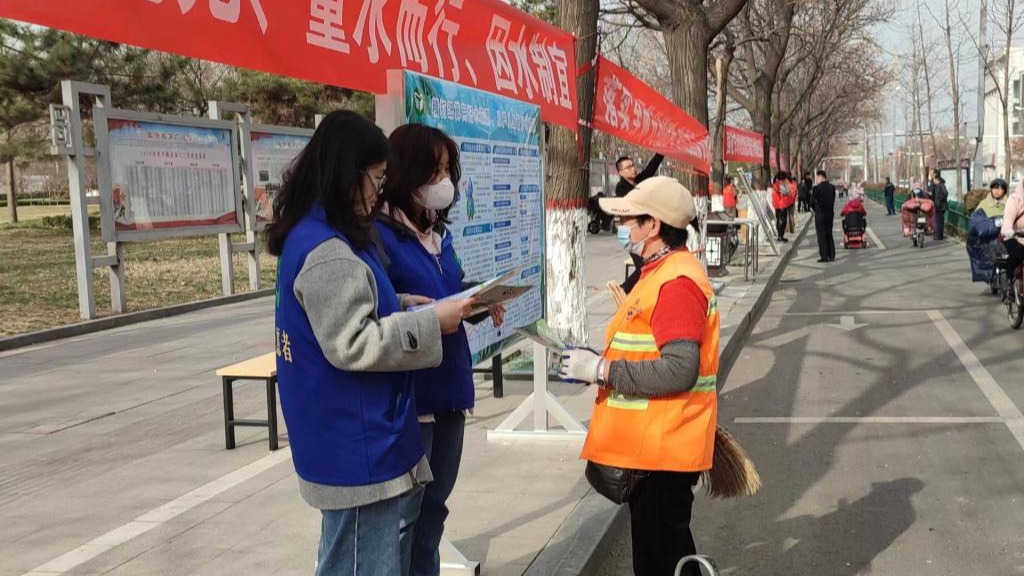 在曲阜市大成广场,志愿者身穿蓝色马甲,引导市民有序浏览宣传展板,现场发放《中华人民共和国水法》《节约用水条例》《公民节约用水行为规范》等宣传资料300余份,开展节水知识科普和节水倡议活动,并设立节水宣传咨询台,回答市民相关咨询,普及生活节水常识。