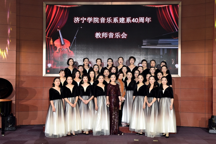 音乐会开始前,通过电子屏幕播放了“喜迎音乐系建系40周年宣传片”,宣传片从十个部分全面总结了音乐系近几年来在学校党委领导下所取得的辉煌成绩。音乐会以民族室内乐合奏《绒花》和舞蹈《国泰民安》拉开序幕,以全体教师合唱《走向复兴》落幕。整台晚会以歌颂伟大的祖国、歌颂伟大的新时代为主题,节目形式多样,内容丰富,全员参与,充分展示了音乐系教师团队的专业素养和精神风貌。音乐系将以本科教学工作审核评估为契机,以评促建,以评促改,努力创造更加辉煌的明天!