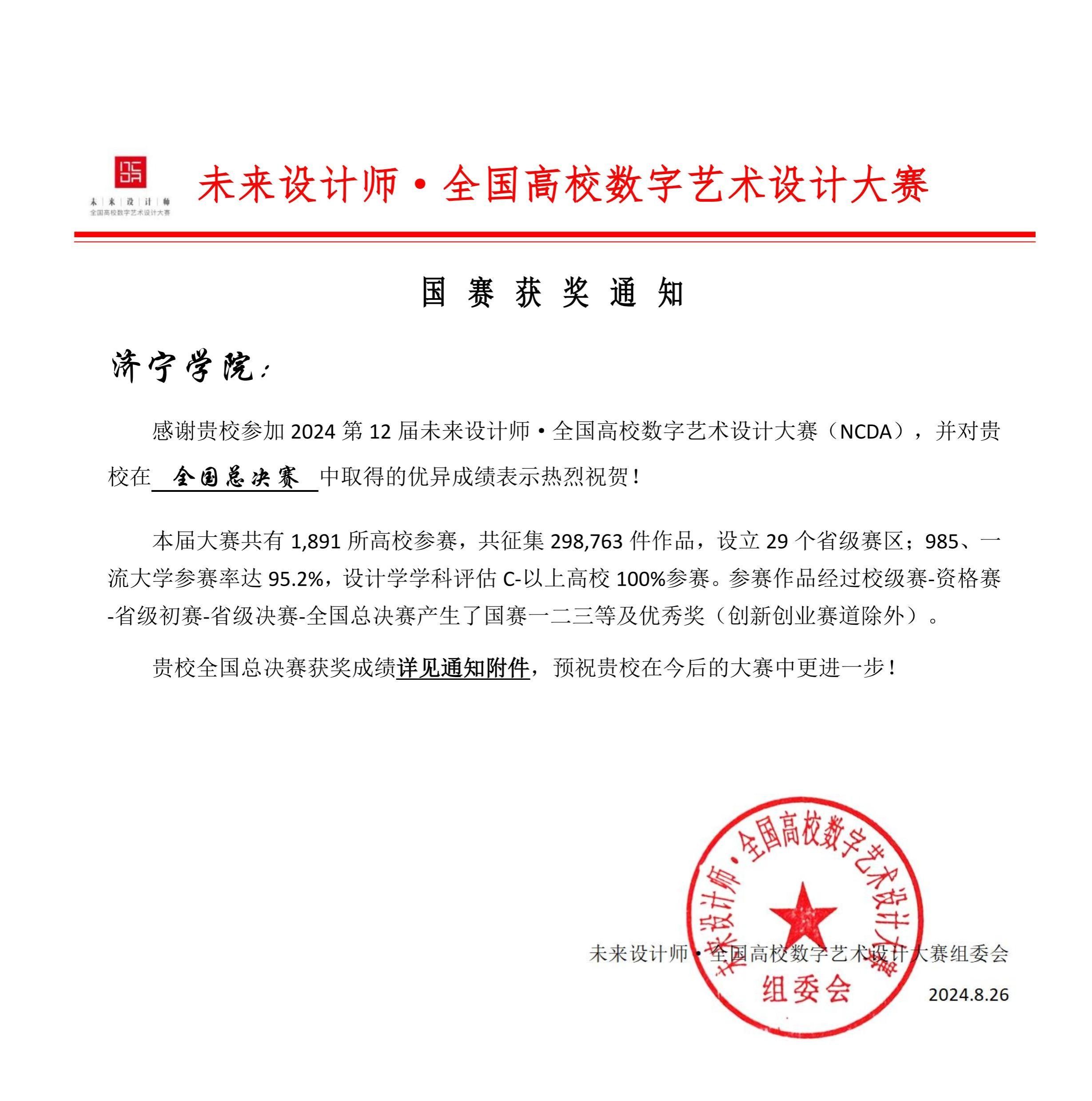 近日,“第十二届未来设计师·全国高校数字艺术设计大赛(NCDA)”获奖揭晓,我校美术学院师生参赛作品共斩获全国一等奖2项、二等奖1项、三等奖1项,省级一等奖6项、二等奖10项、三等奖11项的佳绩。