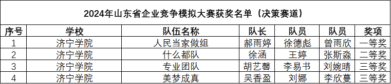 近日,由中国管理现代化研究会决策模拟专业委员会主办的第十三届山东省高校企业竞争模拟大赛落下帷幕,我校经济管理学院选拔的4支参赛团队在本次比赛中荣获一等奖1项、二等奖1项、三等奖2项。