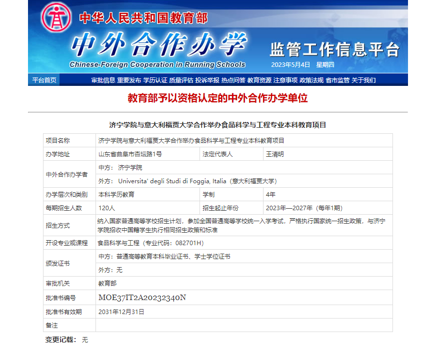 新利18体育官网在线娱乐 与意大利福贾大学合作举办食品科学与工程专业本科教育项目