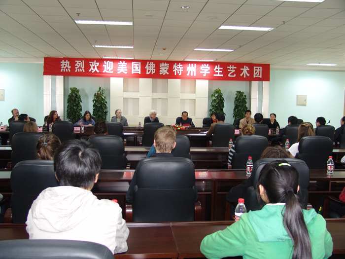 2010年4月8日上午,以 Tom Carnor先生为团长的美国佛蒙特州学生艺术团一行34人访问我校。