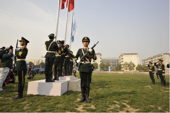2016年,我校大学生国旗护卫队荣获第三届全国高校升旗手交流评比二等奖,