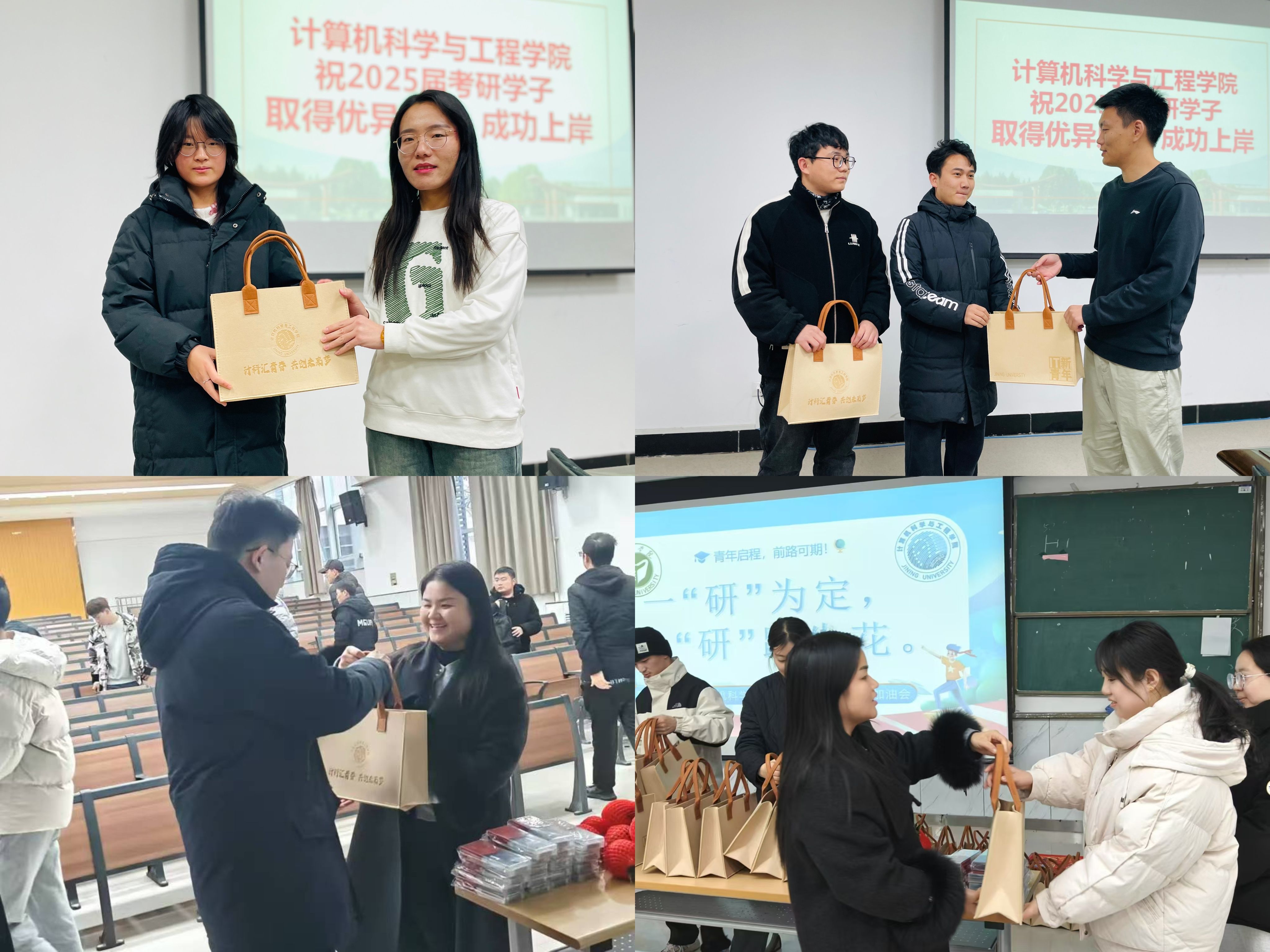 活动现场,老师们与考研学子面对面交流,并悉心叮嘱学子们在备考过程中要注意调节情绪,避免过度紧张和疲惫,保持积极乐观的心态,以饱满的精神状态迎接考研。此外,学院还为同学们准备了考研贺卡及“考研大礼包”,其中包括心想事“橙”、IT新青年专属手提包和金榜题名文具。一句句暖心的叮嘱,一件件贴心的礼物,让考研学子在寒冷的冬日里感受到了来自学院的浓浓暖意与支持。