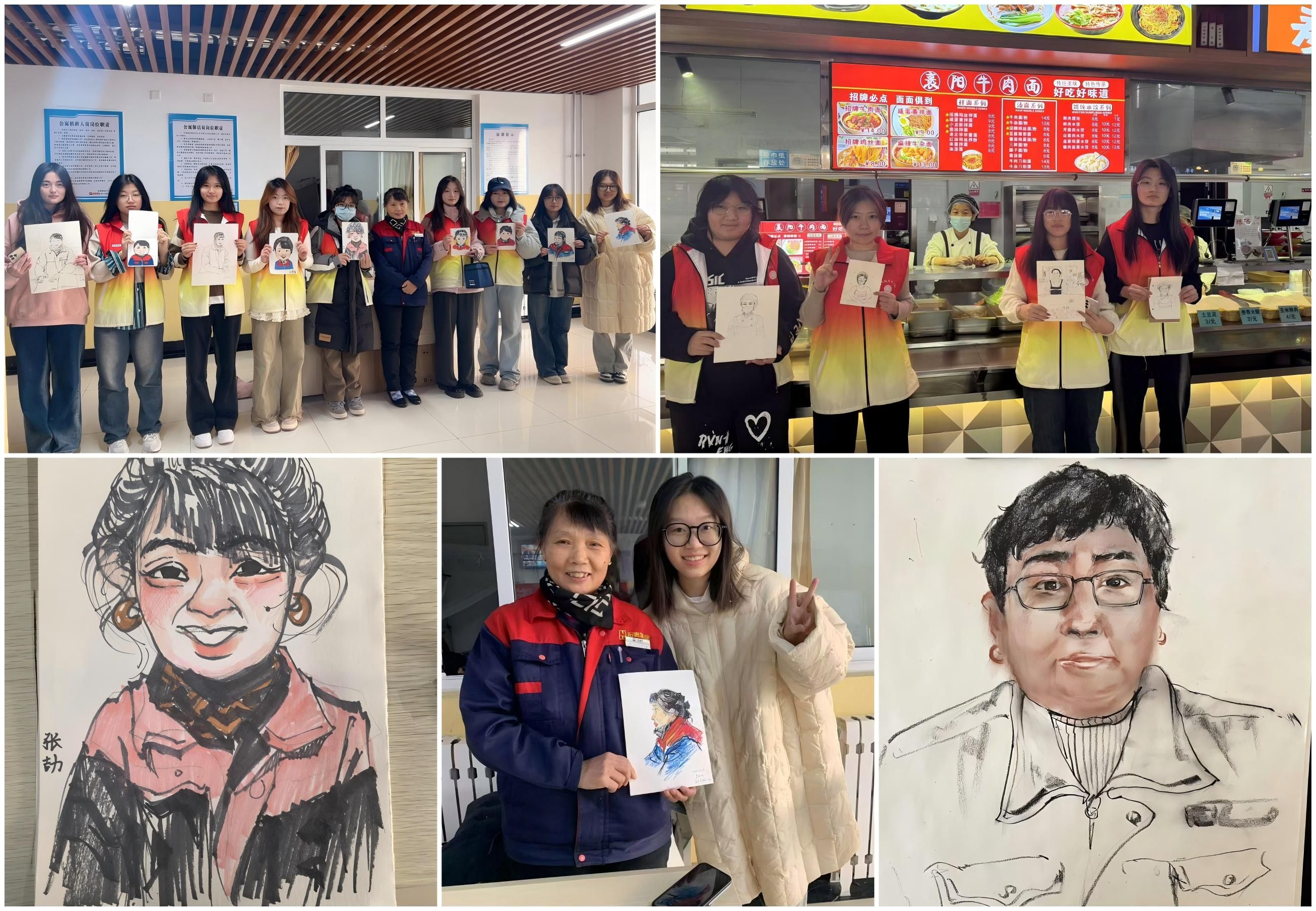 为弘扬志愿精神,关心关爱劳动者,美术学院青年志愿者团队走进社区、校园,开展了“志以星火,愿暖冬日”与“画映职彩,情暖人心”主题志愿服务活动。在社区中,志愿者向过往居民耐心、细致地讲解志愿精神所蕴藏的时代价值与意义,热情洋溢地宣传志愿精神的向上向善力量,引导社区居民学习、理解、感悟志愿精神的真谛,号召社区居民做志愿精神的践行者、传递者,让志愿精神在社区里蔚然成风。在校园中,志愿者发挥专业特长,用手中的画笔描绘出一幅幅生动的“最美工作照”,赠予忙碌在校园安保、餐厅服务、公寓管理、环境清理等岗位上的劳动者,带给他们最暖心的关怀与最有力的鼓舞。