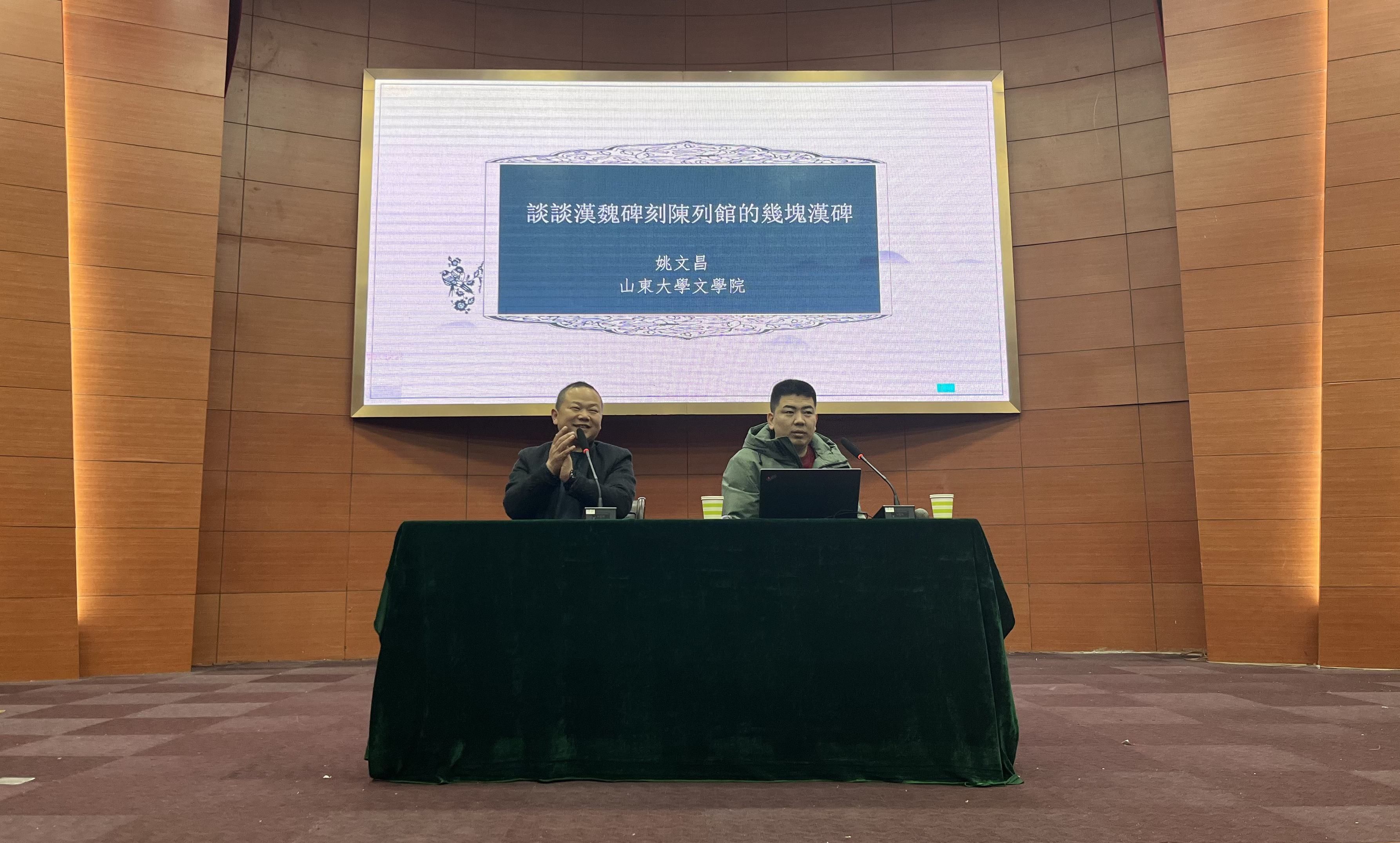 姚文昌以《谈谈汉魏碑刻陈列馆的几块汉碑》为题,着重讲诉了其关于《祝其卿坟坛刻石》的最新研究成果,通过详实的史料搜集与分析,认为《祝其卿坟坛刻石》的“祝其”乃是“況其”之误识,并推测“況其卿”是《尹湾汉墓简牍》所载的“況其邑丞孔宽”,其缜密的逻辑、严谨的考据令在场师生无不赞叹。