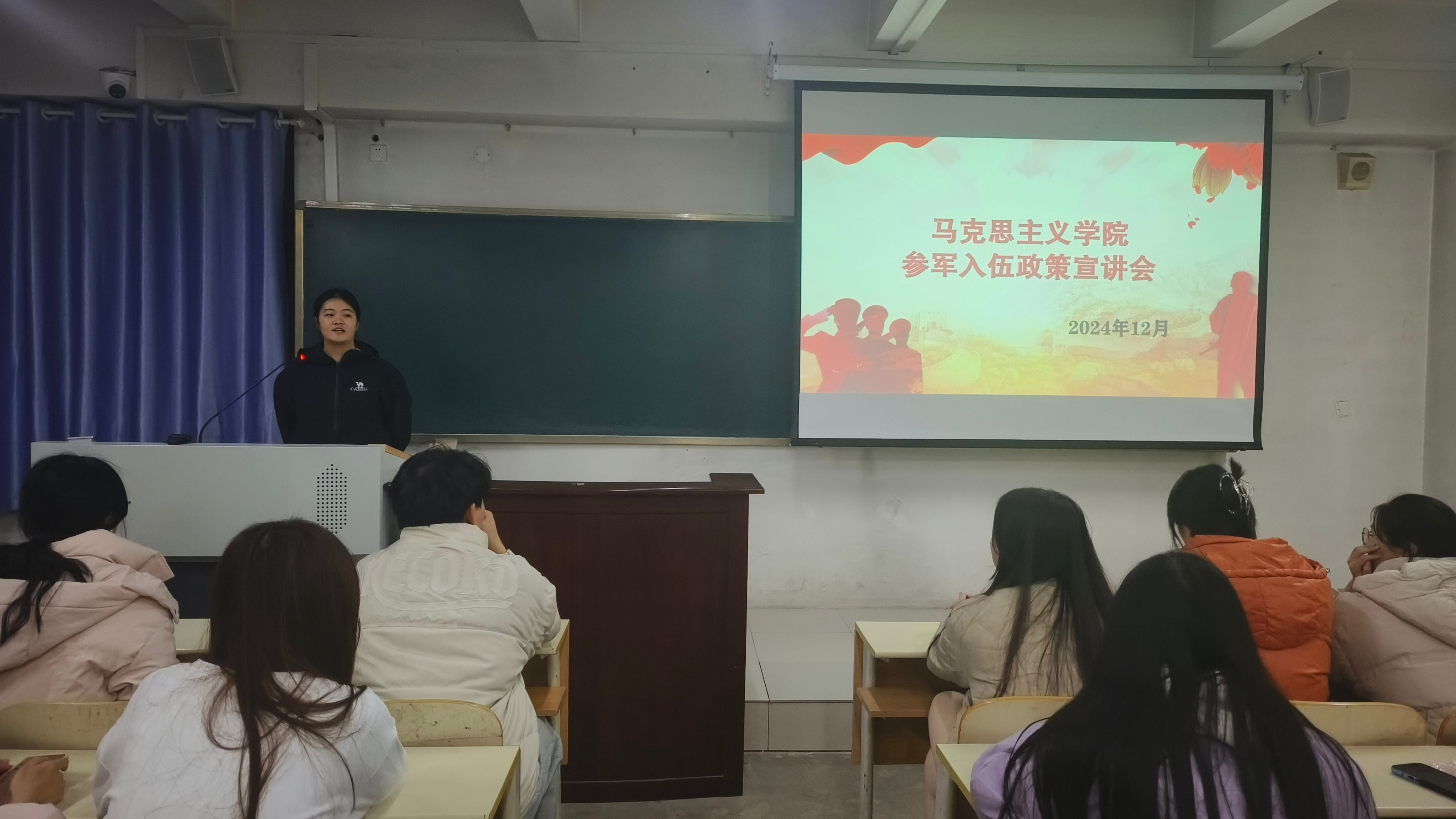 为深入学习贯彻党的二十届三中全会精神,落实习近平总书记关于“深化全民国防教育”的重要指示,引导学生坚定理想信念、传承红色基因、提升国防意识,近日,马克思主义学院组织观看国防教育题材电影《一生交给党》暨征兵宣讲活动。