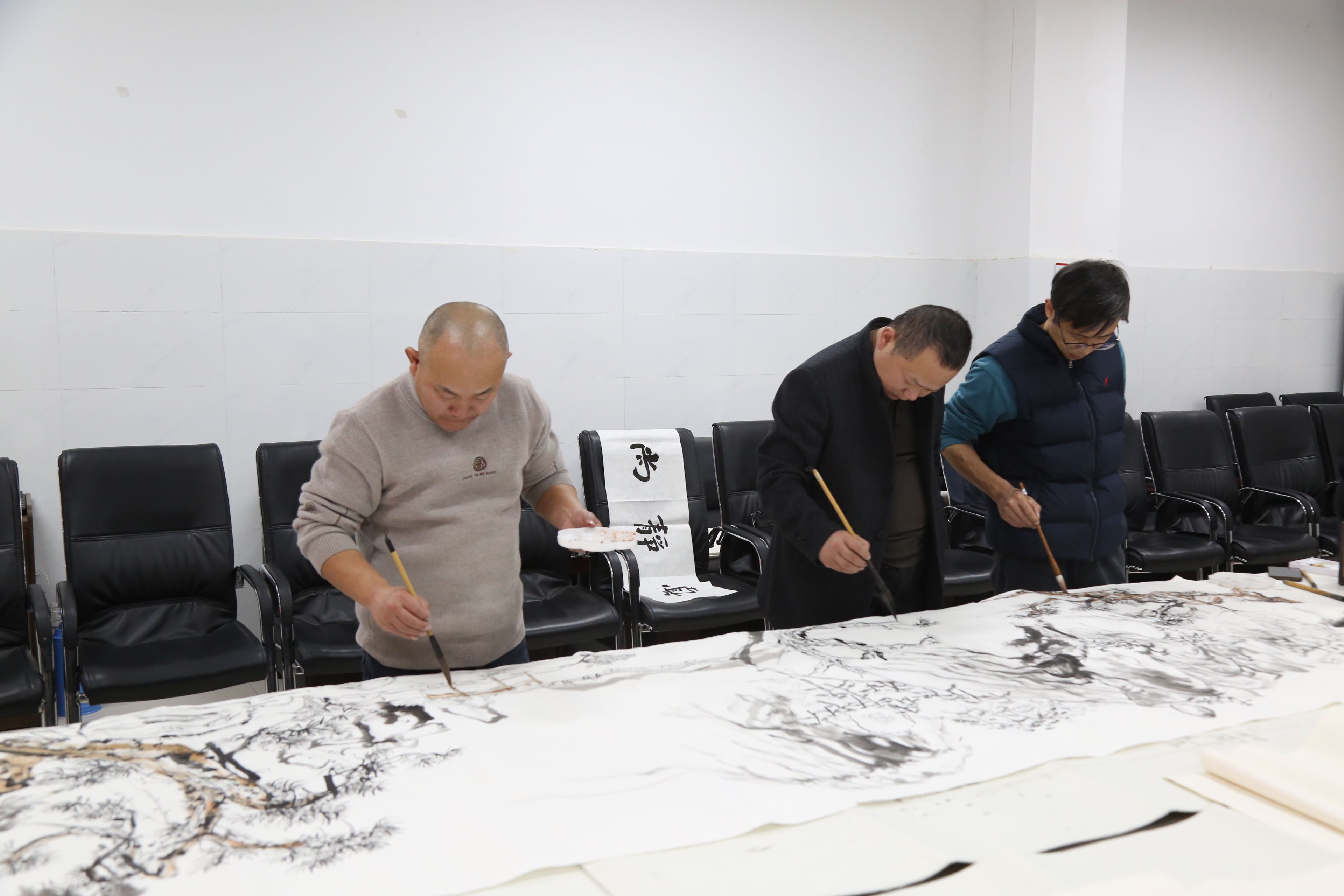 在美术课程之后,参与活动的书画家共同创作,并为现场观摩的学生讲解书画的基本知识和技巧,让孩子们对书画艺术有了更直观的认识。