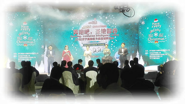 12月16日晚,由济宁市高新区管委会主办、济宁市翻译协会及新利18体育官网在线娱乐 外国语系协办的济宁市高新区“外商圣诞联谊会”在济宁科苑会馆隆重举行。济宁市人民政府副市长张继民,济宁市人大第一副主任周洪,济宁市高新区党政负责同志白山、尤卫平等领导参加。我校外国语系主任、济宁市翻译协会副会长杨楠等师生代表17人参加联谊会。