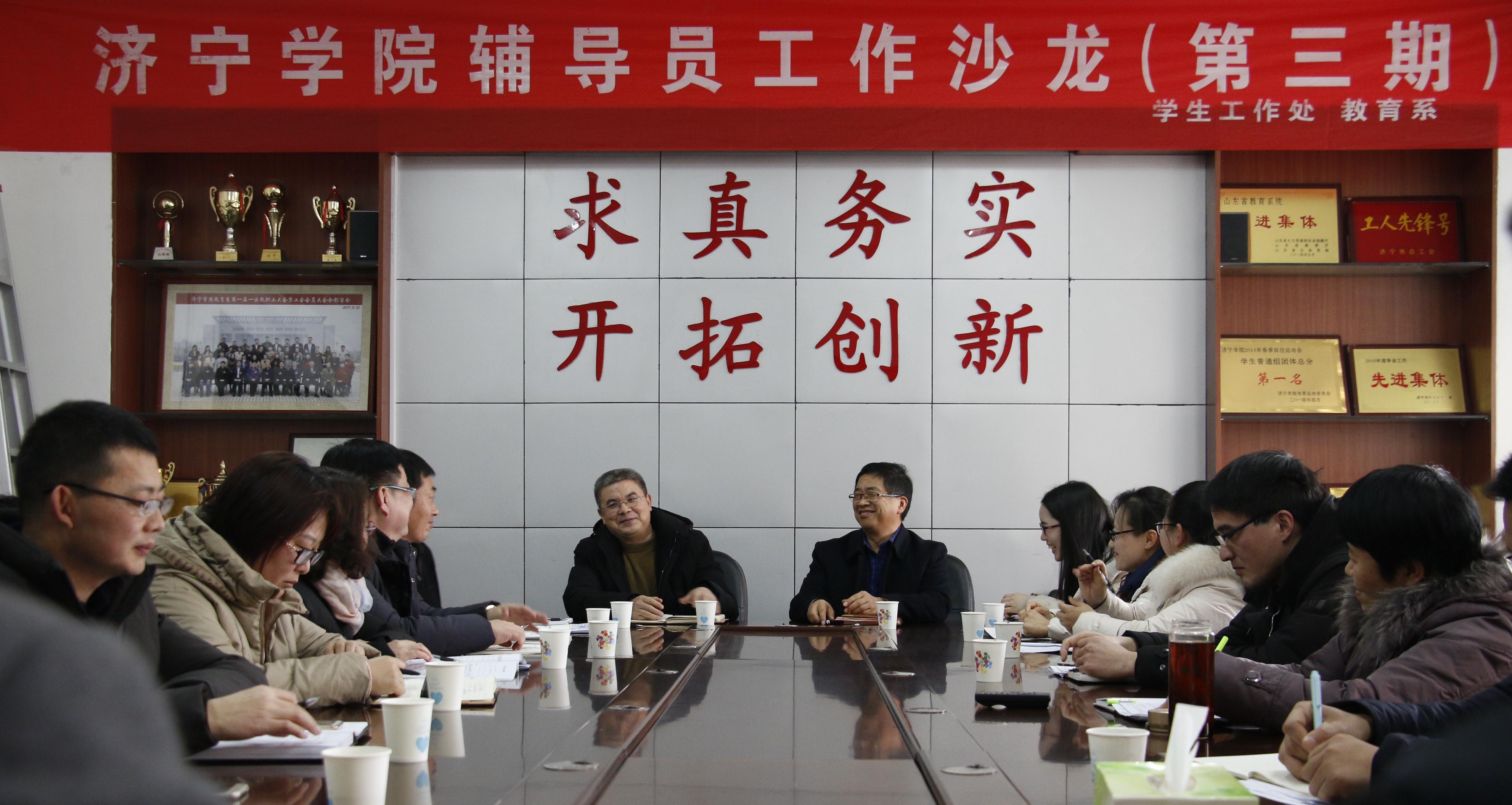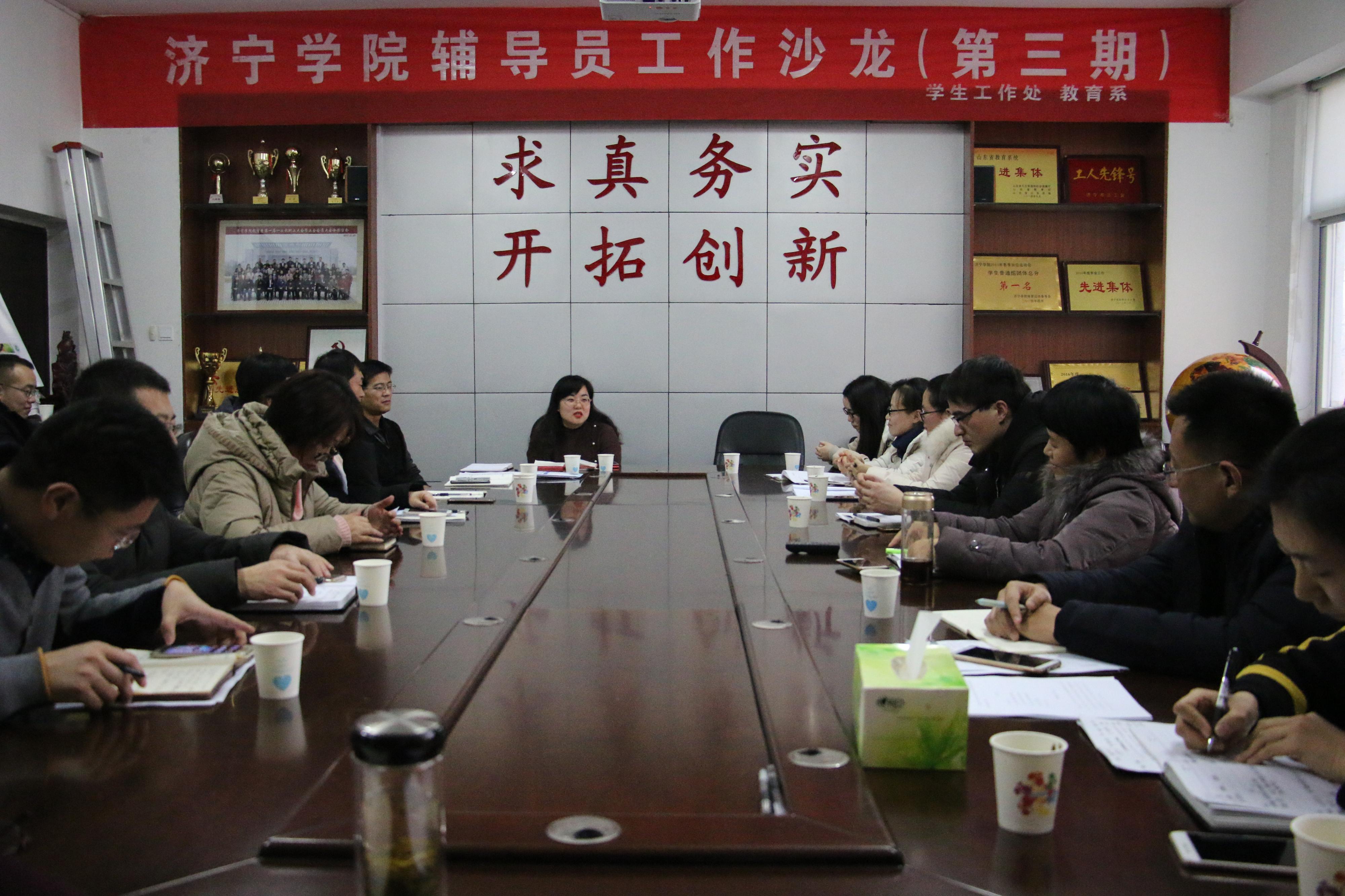 1月7日下午,由学生工作处主办、教育系承办的新利18体育官网在线娱乐 第三期辅导员工作沙龙在2号楼A211举行。学生工作处处长夏可树、教育系党总支书记乔东华、学生工作处副处长孙婷婷、各系党总支副书记及全体辅导员参加了活动。活动由教育系党总支副书记刘勇主持。