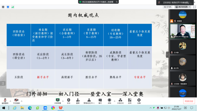 12月7日晚,人文与传播学院“博雅讲坛”第二期暨“2022迎新学术活动”系列演讲第三场准时开讲。论坛特邀山东省特级教师、济宁市教育科学研究院副院长张西玖畅论《新课程背景下教师专业发展》。该院院长助理张颖慧博士主持活动,200多名师生云端参会。