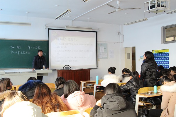 12月19日,中文系主任王钦鸿教授在文科楼A505室为2016级汉语言文学师范班进行“十九大精神”宣讲,会议由中文系团总支书记马永涛主持。