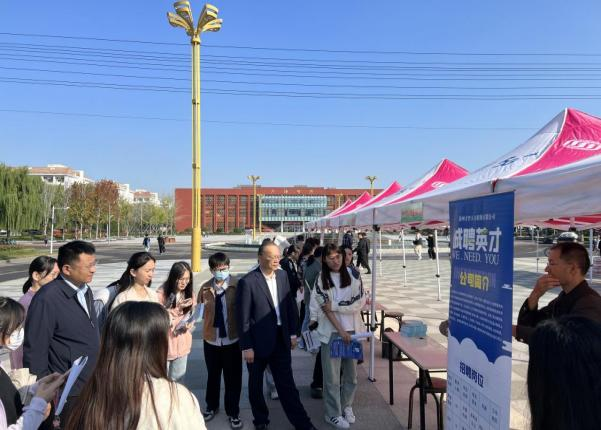 招聘会上,党委书记朱桂林、副书记岳现超与多家企业深入交流,了解企业情况、招聘岗位及用人规格。